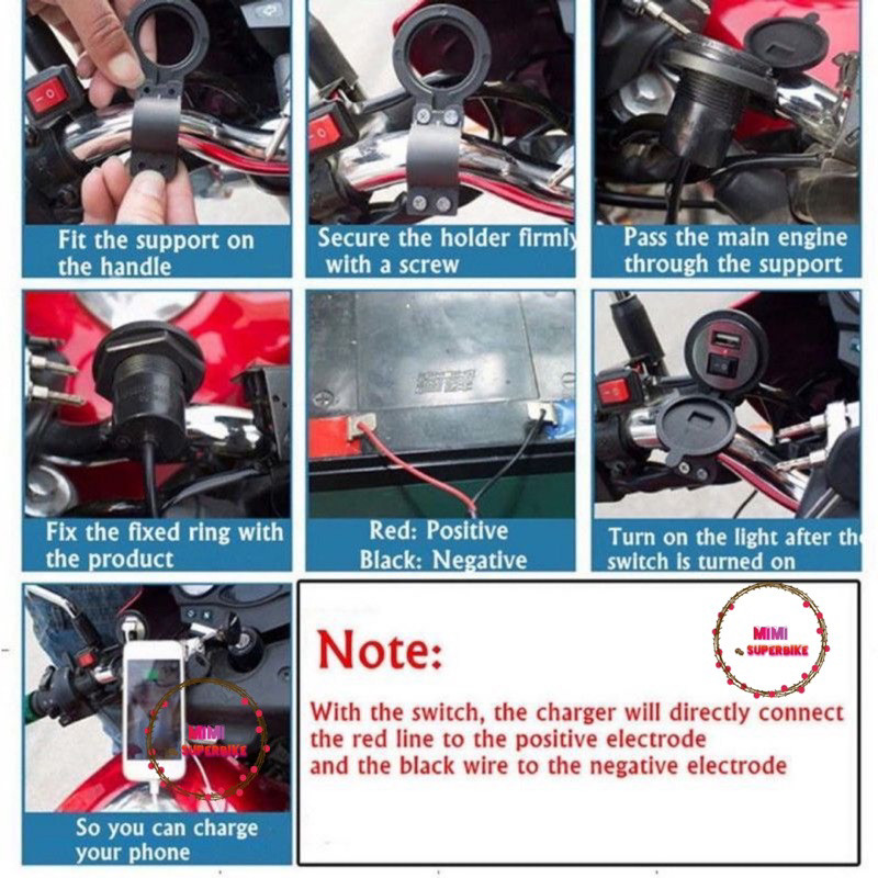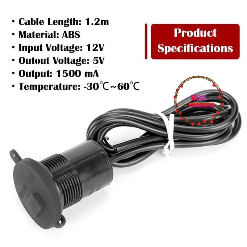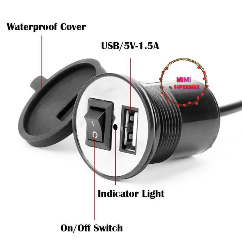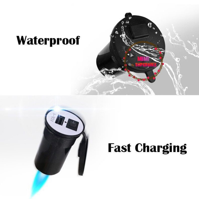 UNIVERSAL USB POWER SUPPLY PHONE CHARGER WITH SWITCH ON OFF MOTORCYCLE MOTOSIKAL MOTOR MOTO CABLE WIRE SUIS TELEFON