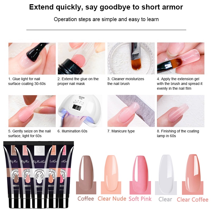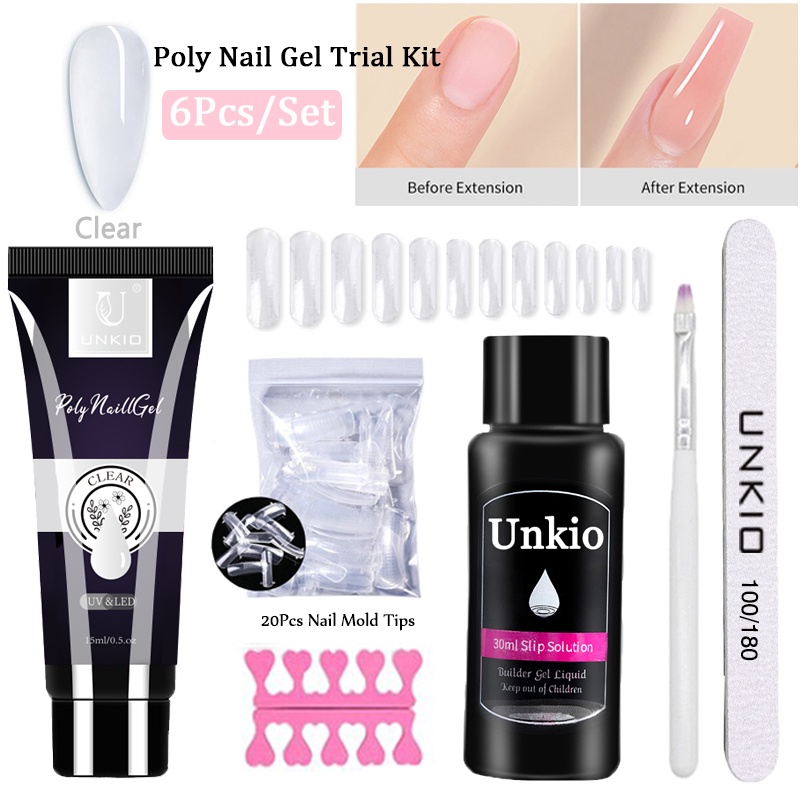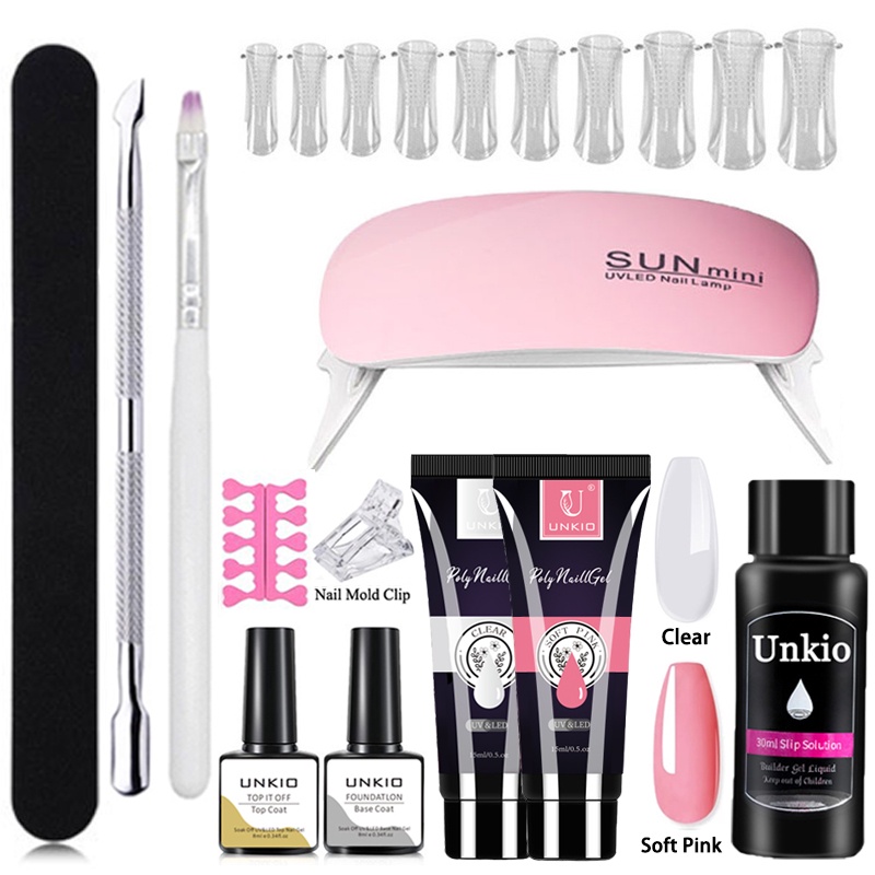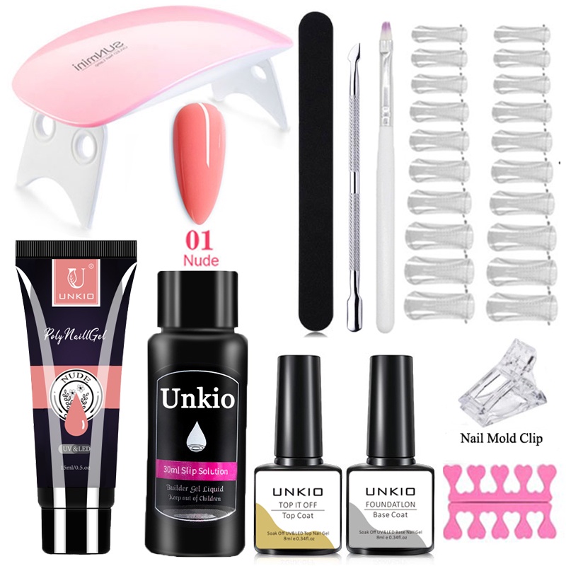 UNKIO Poly Gel Nail Extension Set UV LED Building Gel Quick Nail Extension Long-Lasting Poly Nail Gel Kit Nail Manicure