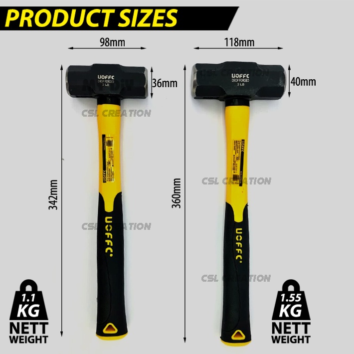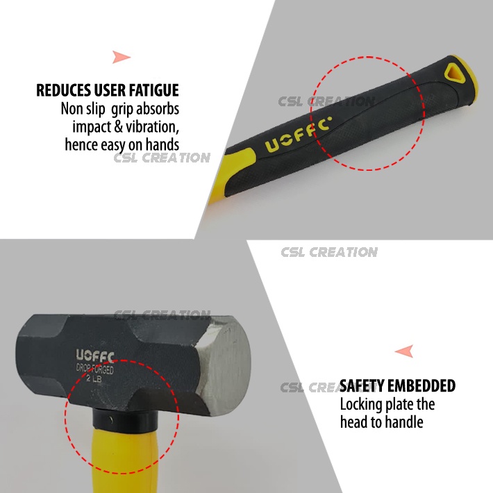 UOFFC 2LB 3LB SLEDGE HAMMER DEMOLITION HAMMER DROP FORGED STEEL HEAD SLEDGE HAMMER