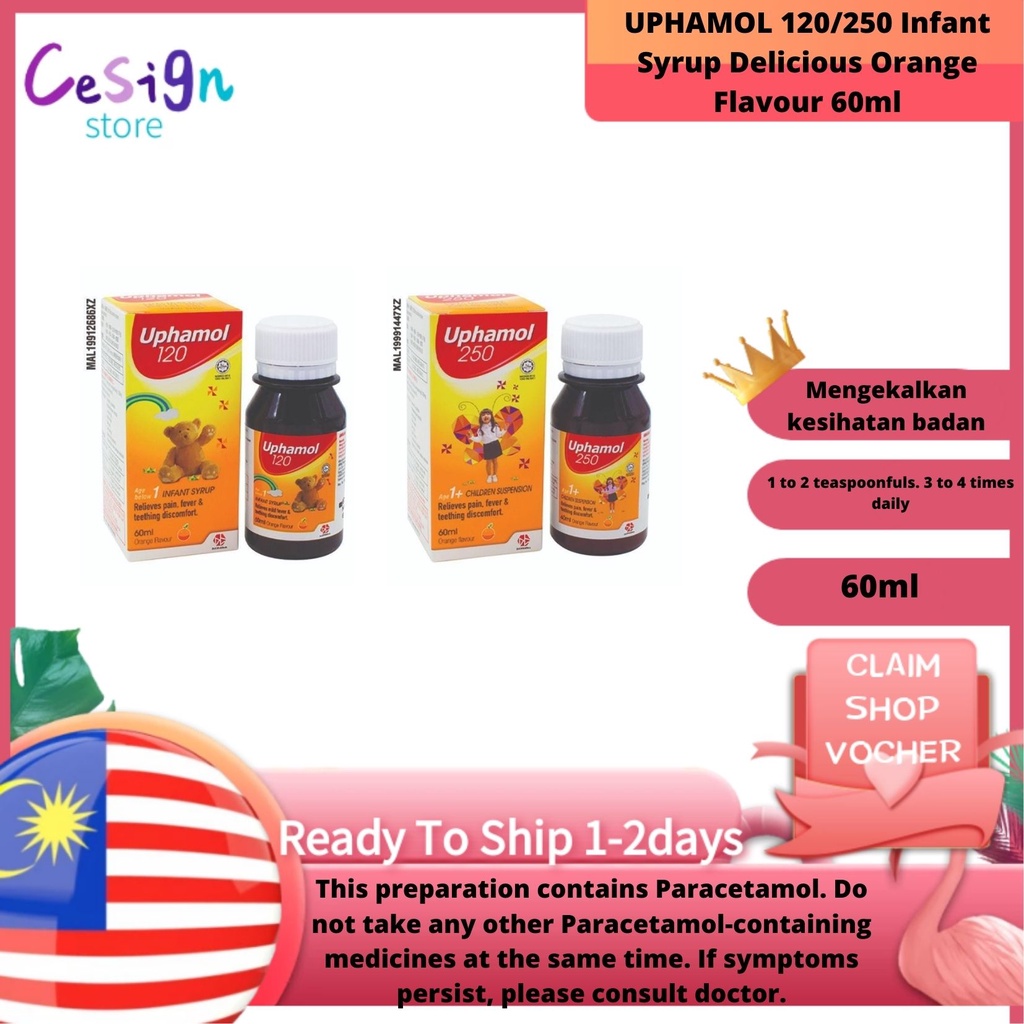 UPHAMOL 120/250 Infant Syrup Delicious Orange Flavour 60ml