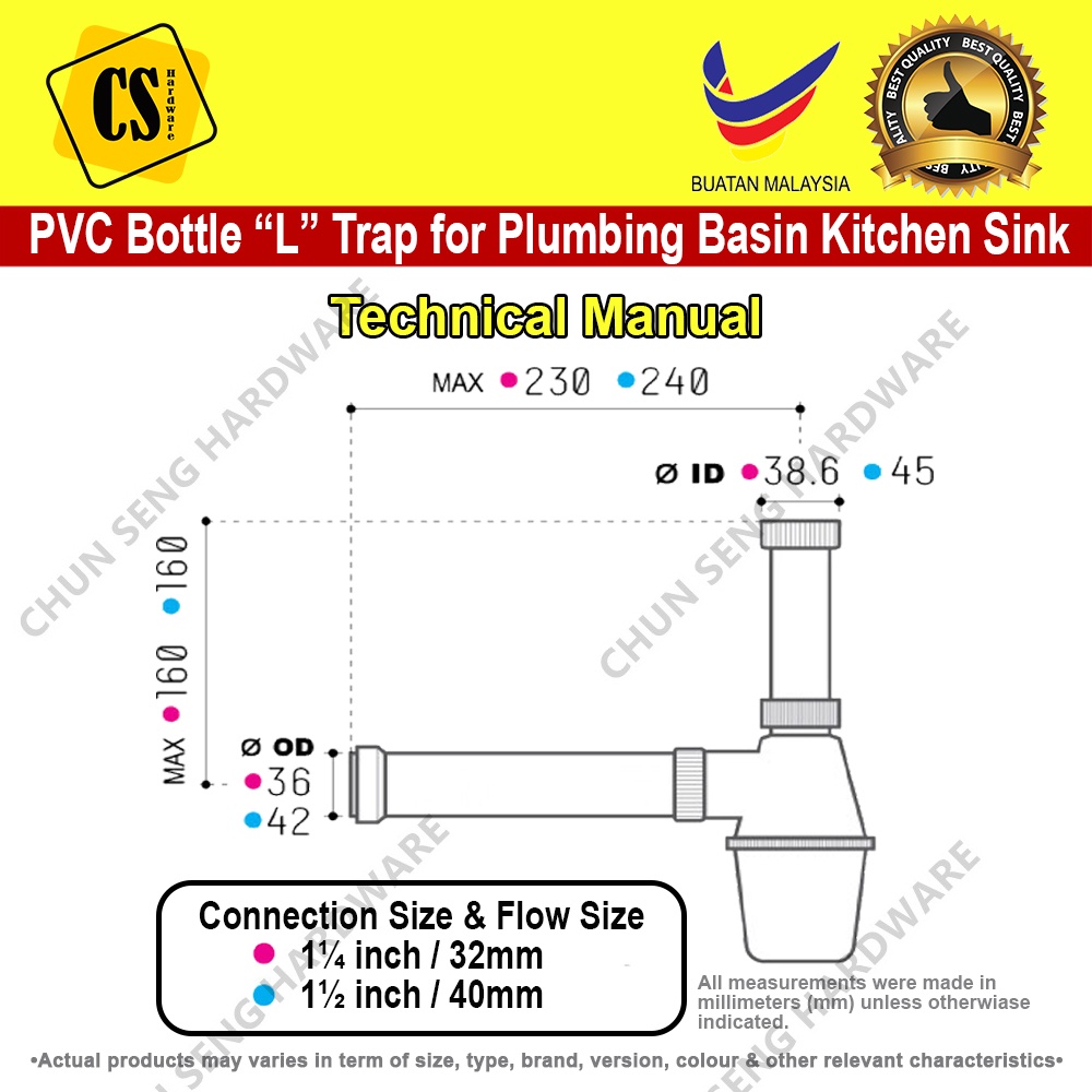UPVC Bottle Trap L Trap Basin Bottle Trap Sinki L Trap for Kitchen Sink and Toilet Basin 32mm 40mm