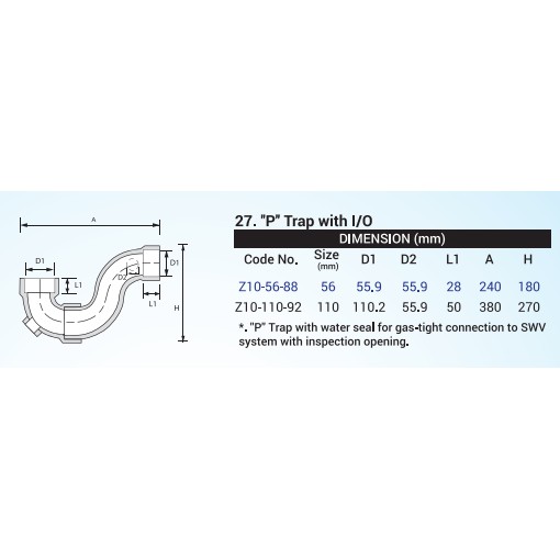 UPVC Fitting or UPVC P Trap With IO 56mm ~ 110mm EXACT Malaysia High Quality Durable