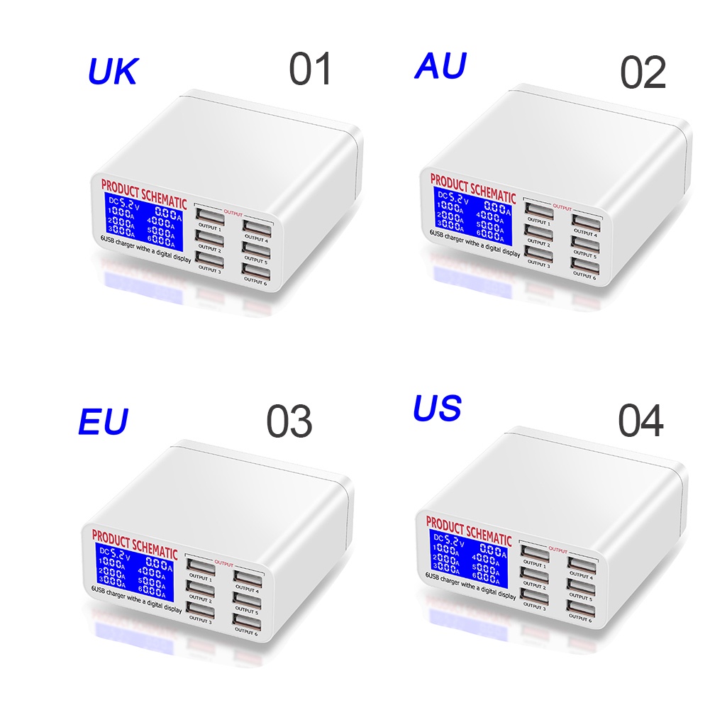 UQ USB Charger Portable Multi USB Port Charger 6 Ports USB Socket Fast Charger with LCD Display