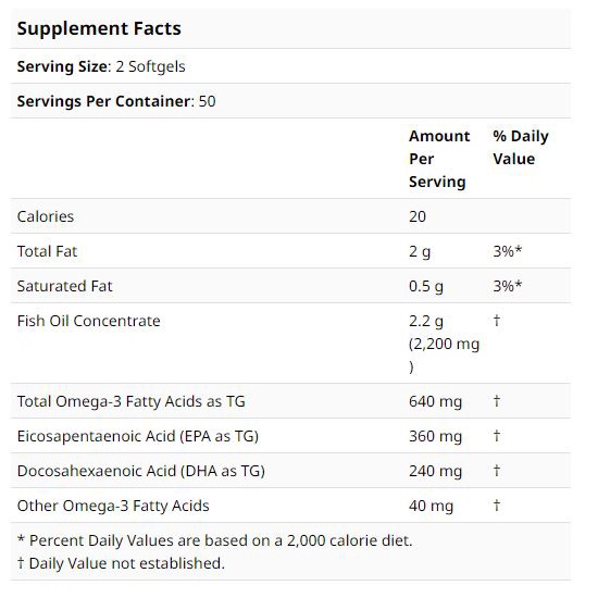 USA California Gold Nutrition Omega-3 Premium Fish Oil 100 Fish Gelatin Softgels 180 EPA / 120 DHA NEW PACKAGING/LABEL