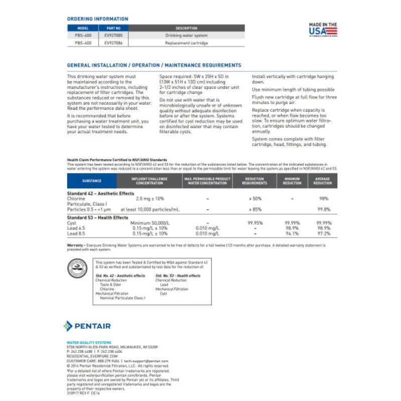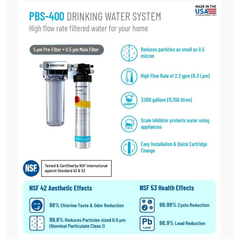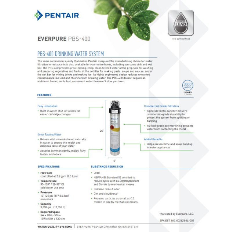 USA PENTAIR EVERPURE PBS400 SET WATER FILTER WATER PURIFIER DRINKING WATER SYSTEM FOR PREP SINK WET BAR COMMERCIAL GRADE