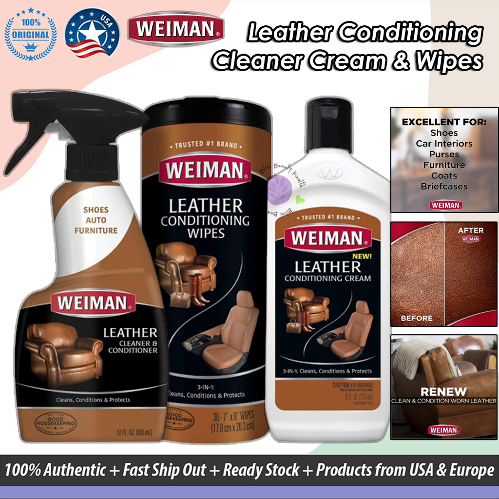 USA Weiman 3 in 1 Deep Leather Cleaner & Conditioner Cream Wipes Leather Cleaner Polish Conditioner