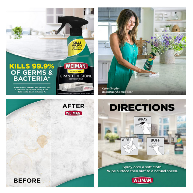 USA Weiman Quartz Countertop Cleaner and Polish l Disinfectant Granite Cleaner and Polish l Disinfectant Wipes
