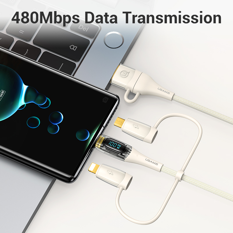 USAMS PD 3 In 2 USB Type C IP Transparent Digital Display Cable (100W)