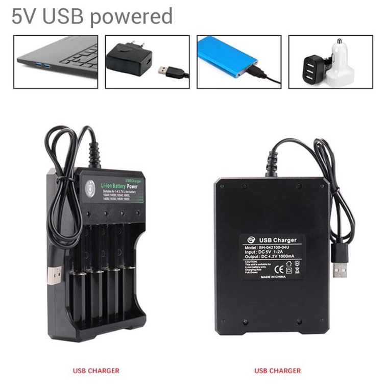 USB 18650 lithium fast charger 1 2 4 slots lipo li-ion Rechargeable 3.7V 4.2V Battery 18650 18500 18350 26650 14500 size