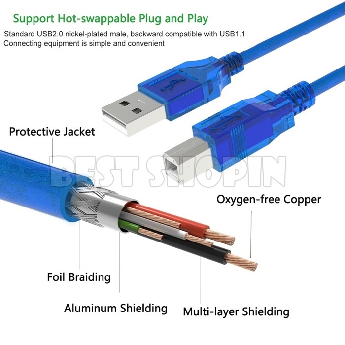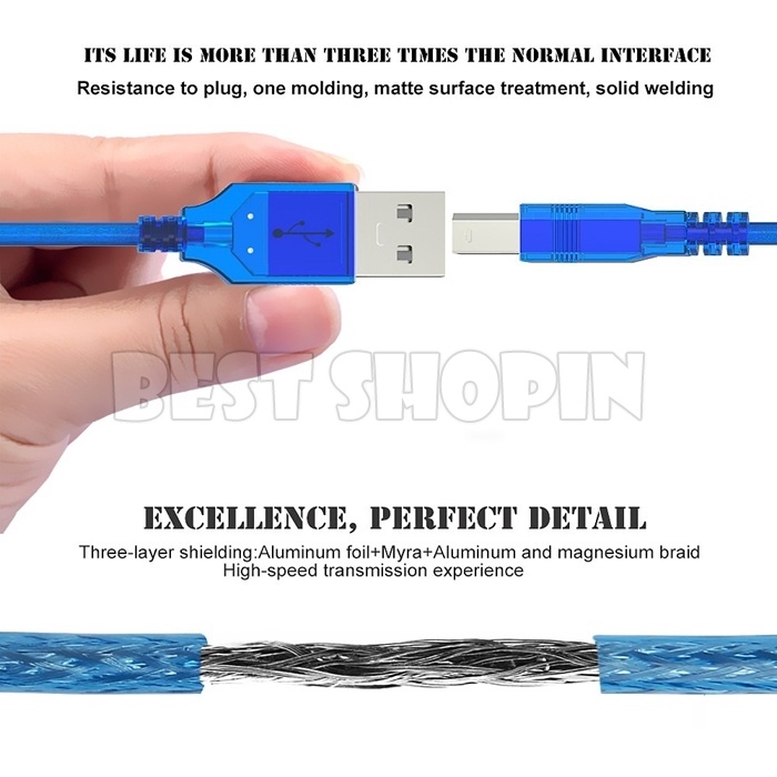 USB 2.0 Printer Cable Type A Male to Type B Male High Speed Blue