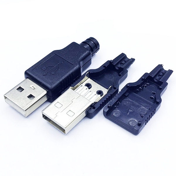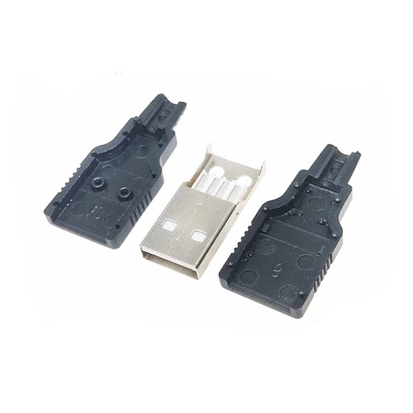 USB 2.0 Type A Male 4-Pin Connector Plug with Black Plastic Shell Housing Cover Assembly Solder DIY Repair Parts
