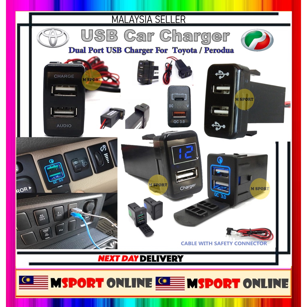 USB 3.0 Toyota Vios Altis Vigo Vellfire Camry Perodua Alza Myvi Dual Port USB Power Socket Charger Meter Adapter