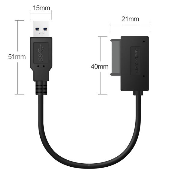USB 3.0 to 7+6 13Pin Slimline SATA Laptop CD/DVD ROM Optical Drive Adapter Cable