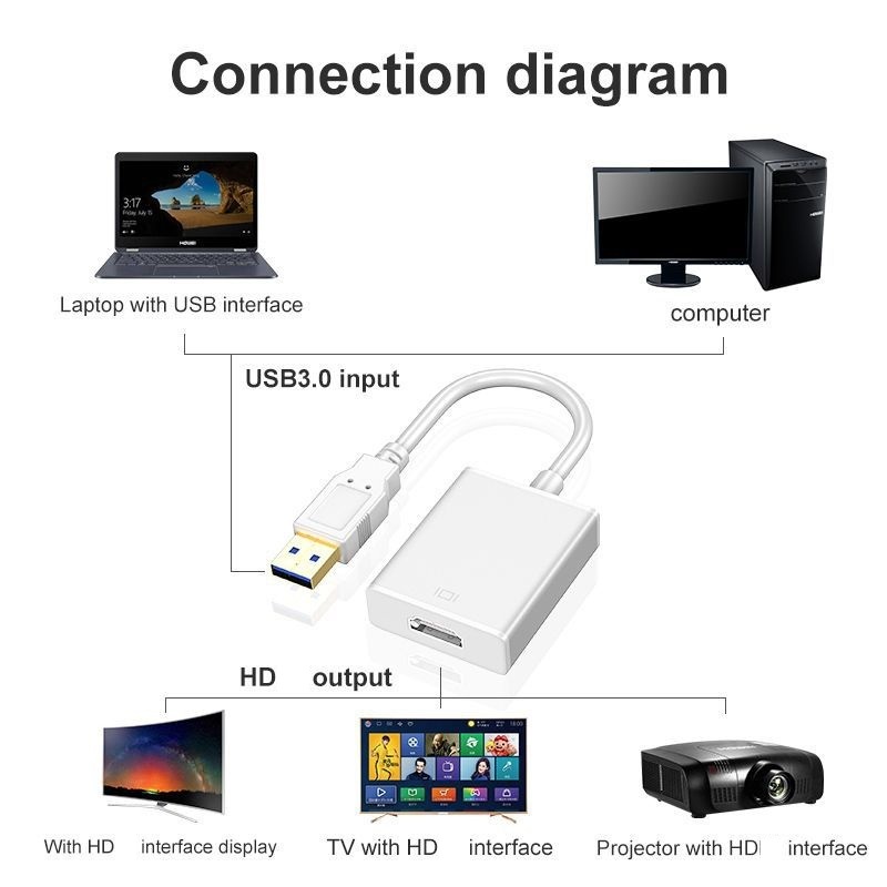 USB 3.0 to VGA Adapter Video Graphic Display External Cable/USB 3.0 to HDTV Converter Notebook External Video Card to HD