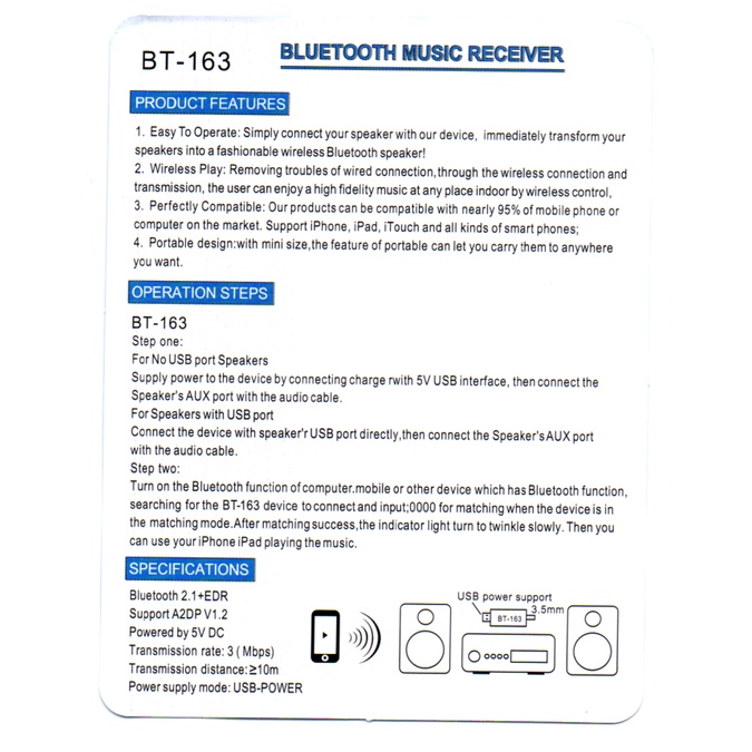 USB Bluetooth audio music receiver (3.5mm stereo wireless adapter) READY STOCK