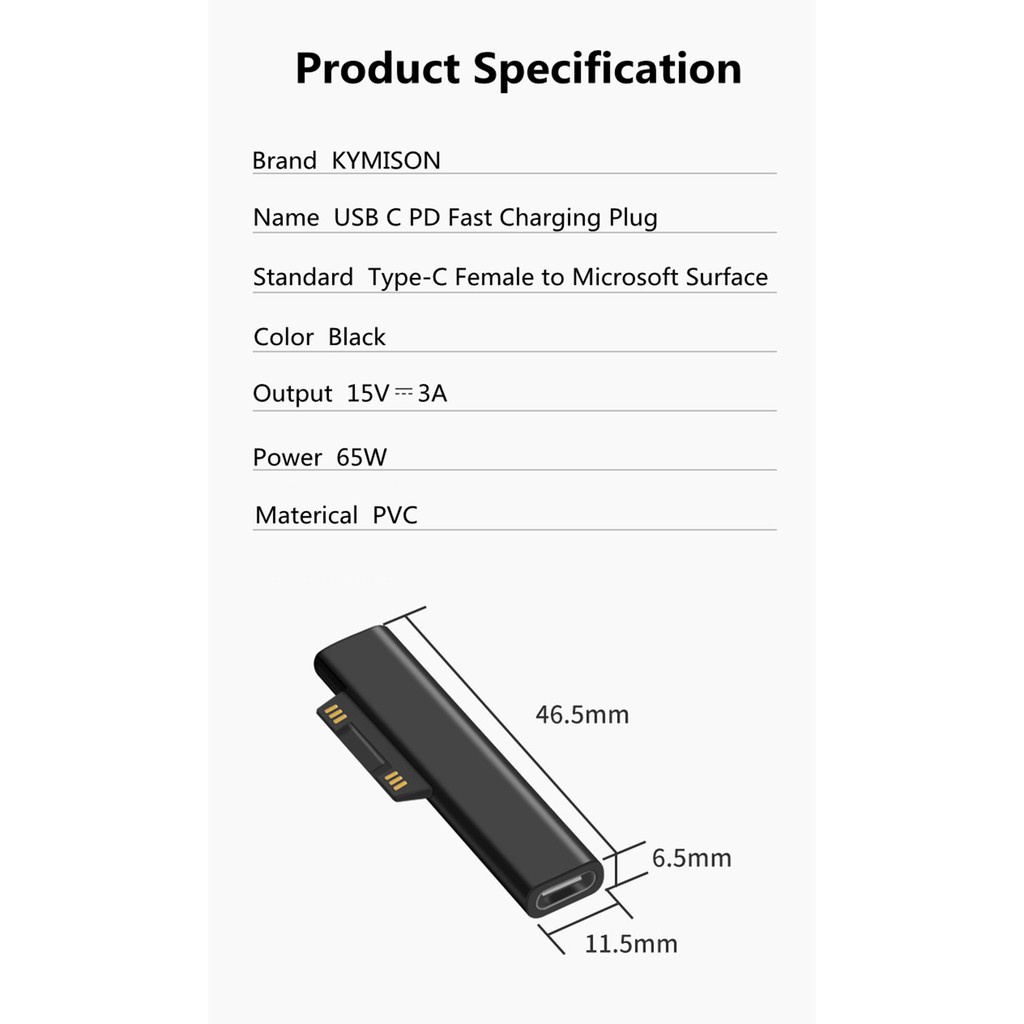 USB C PD Fast Charging Plug Converter for Microsoft Surface Pro 3 4 5 6 Go, USB Type C Female Adapter Connector for Laptop Surface