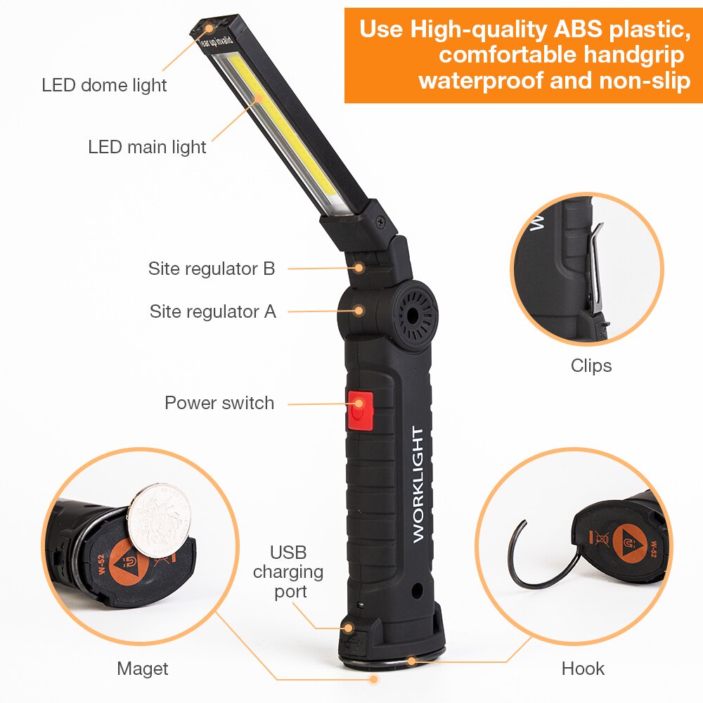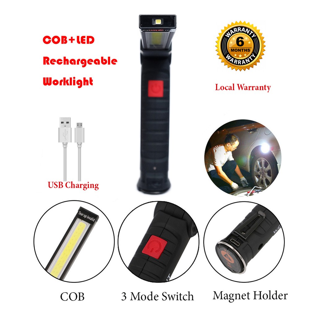 USB Charging Magnetic LED Working Lamp 15cm or 12cm COB Lamp Torch Flash Light and 330 Degree Rotation