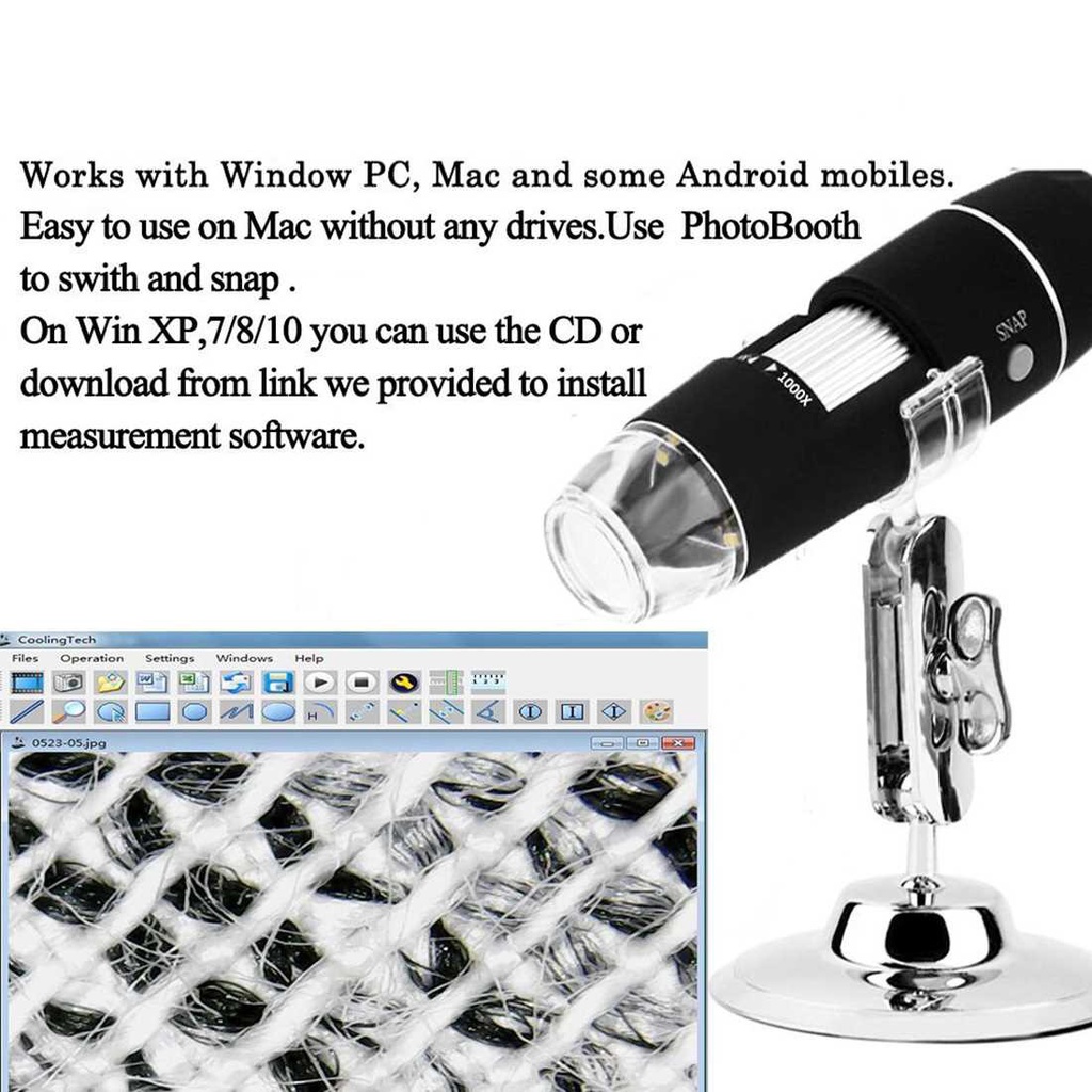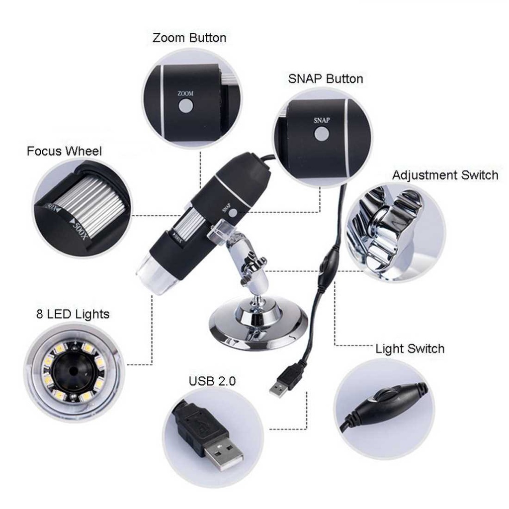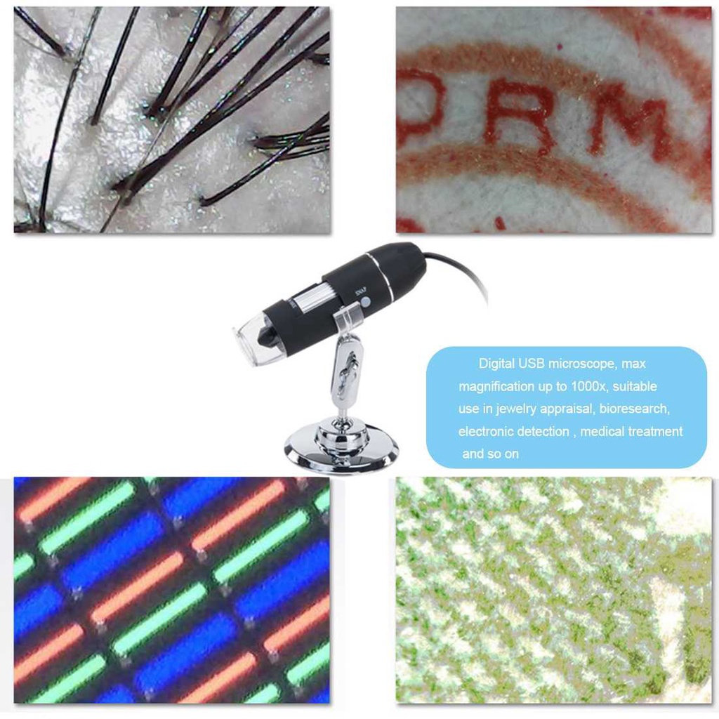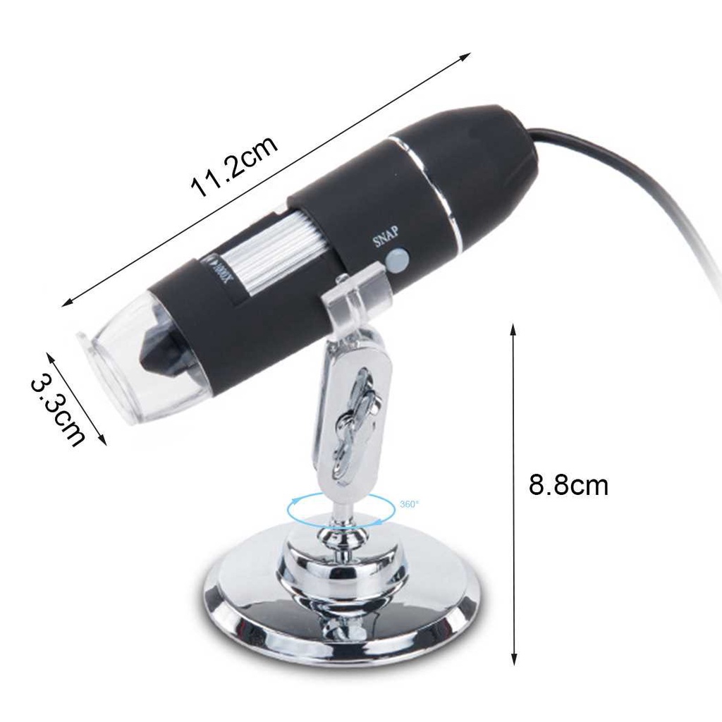 USB Digital Electron Microscope 1000 Times 8 LED Lights for PC and Phones (Black)
