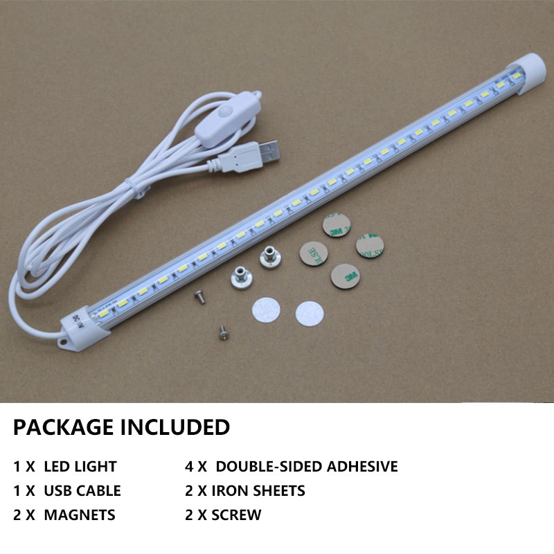 USB LED Light Portable Tube Strip Mount Hang Desk Lights Reading Lamp Eye Protection Lighting 2 Color 18/35/52cm with 1.8 Meter USB Cable for Student Dormitory Desk Wardrobe