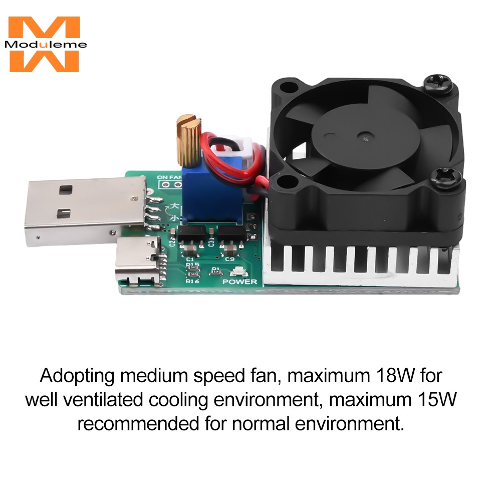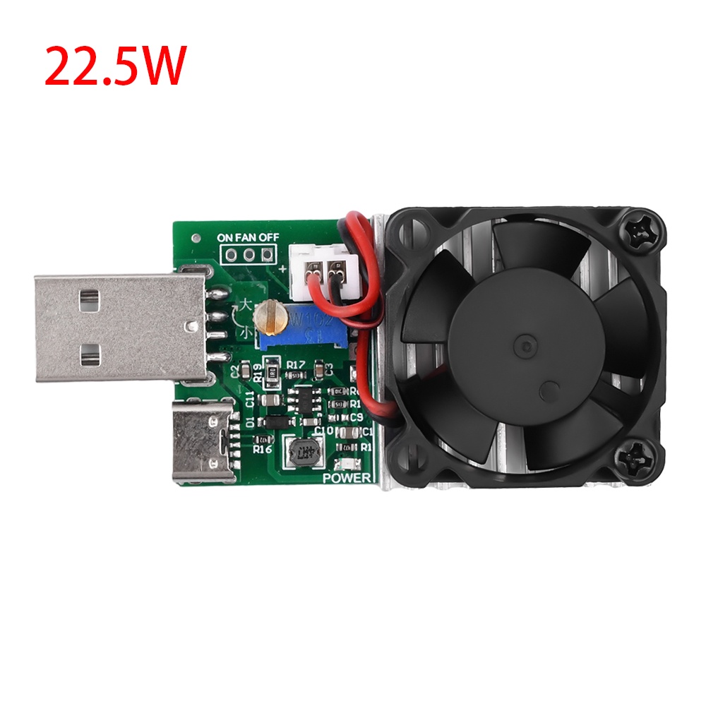 USB Load Tester Electronic Load Test Resistor Module 22.5W USB & Type C Interface Adjustable Constant Current with Cooling Fan