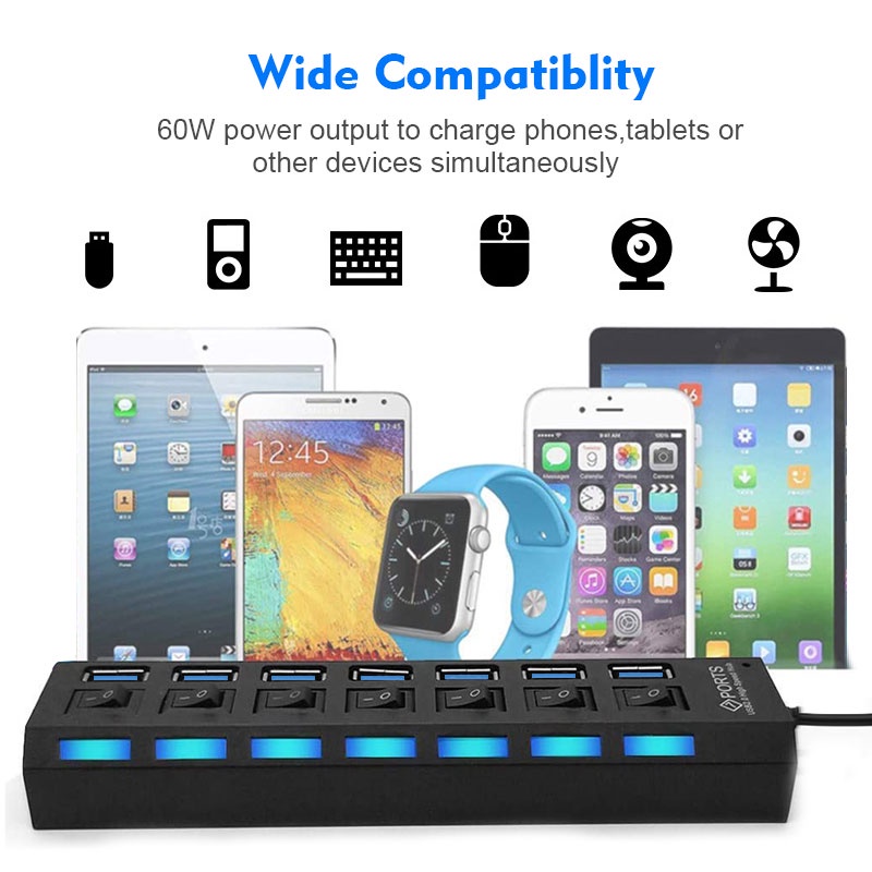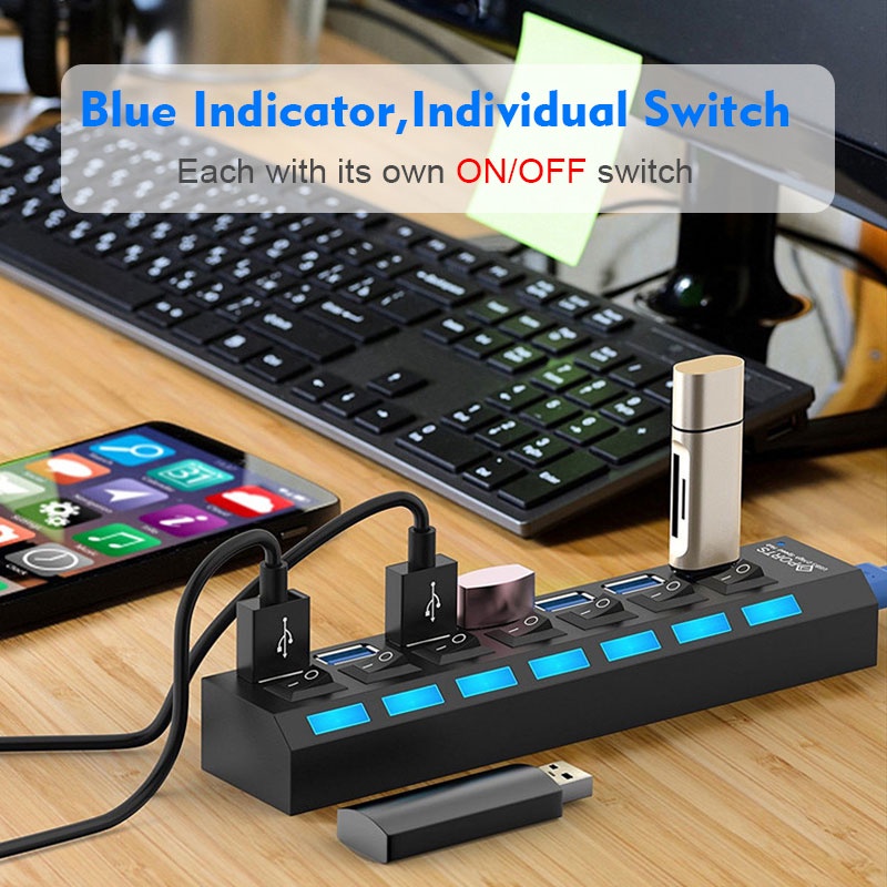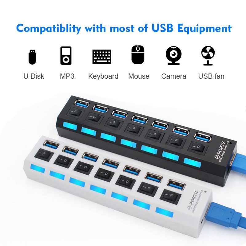 USB Port Extension 7 Port USB 3 Hab Adaptor Adapter USB HUB USB 3.0 extension for PC Laptop USB Splitter USB Card Reader