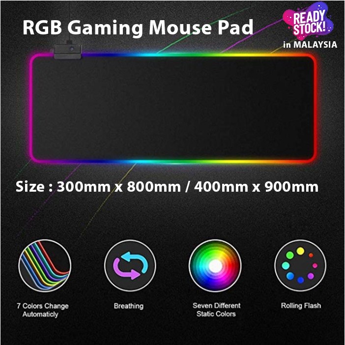 USB RGB Colour LED Lighting Gaming Mouse Pad Large Colorful Lighting for Computer Laptop Notebook