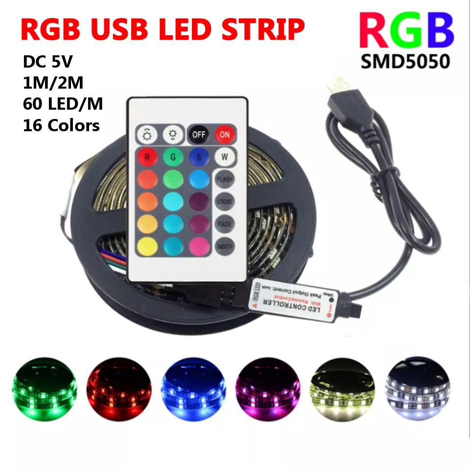USB RGB LED Strip DC 5V SMD 5050 1M, 2M, 3M 24Key Remote 30 60 LED Per Meter, 16 Colors For Computer, TV Backlight