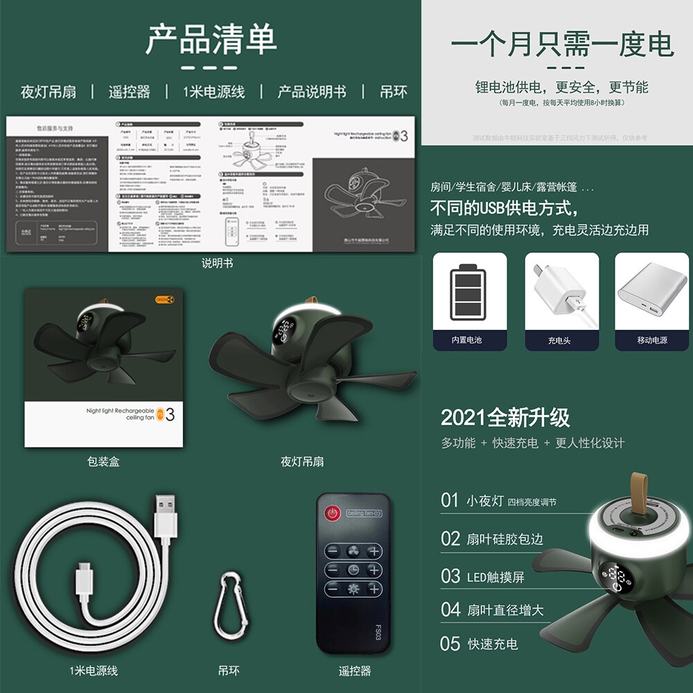 USB Rechargeable Fan Portable 8000mAh Wireless Remote Control Light Hanging Ceiling LED Camping Air Cooler Outdoor Home