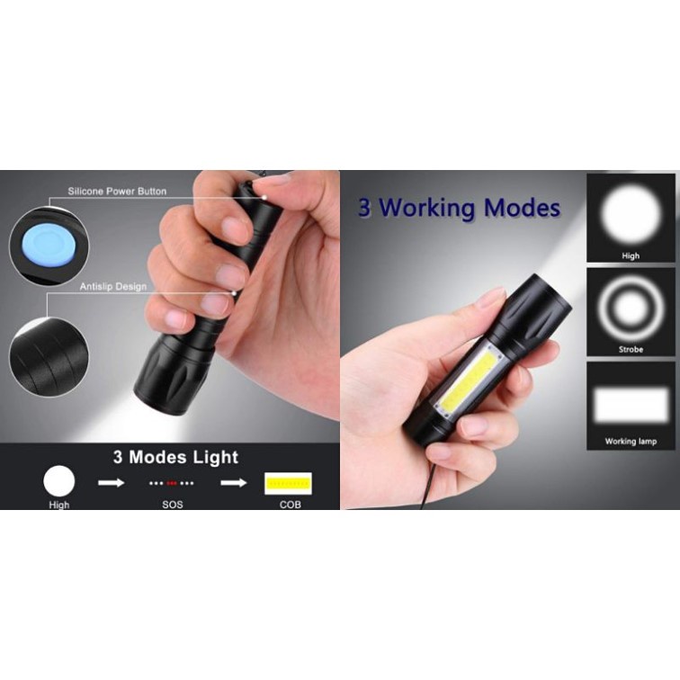 USB Rechargeable Small Flashlight Torch Light XPE COB LED Energy Saving 18650 Battery 511 (Whole Set)