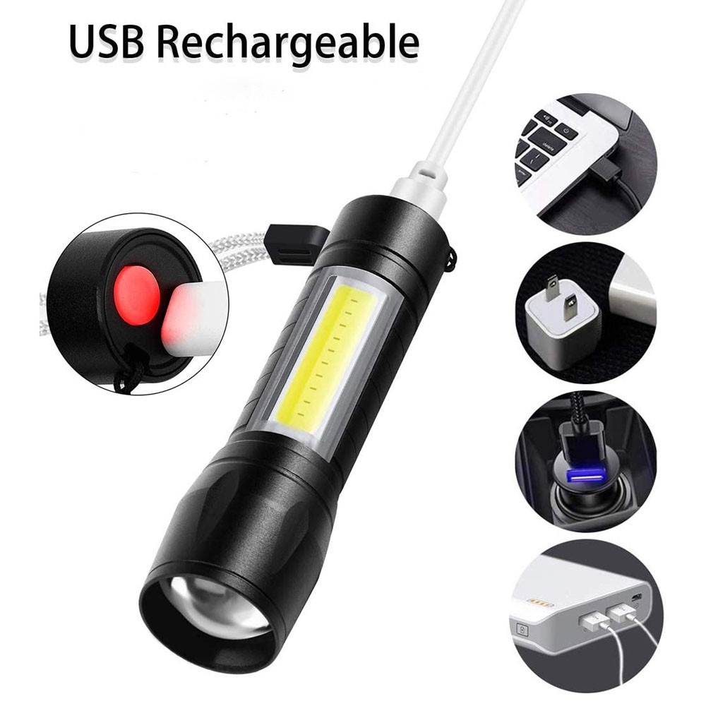 USB Rechargeable Waterproof Mini LED Torchlight 3 Mode With Zoom Torch Light
