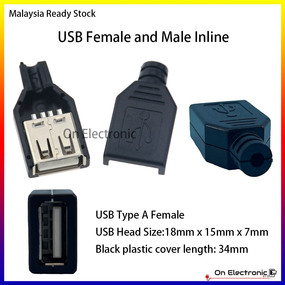 USB Type A Female/Male Socket Solder Jacks Connector PCB Type 4Pin with Black Plastic Cover Type-A DIY Kits