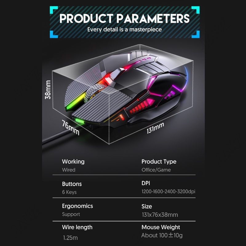 USB Wired Gaming Mouse 6 Buttons 3200DPI Optical Mice Silent Gaming Mice LED Backlit Ergonomics E-Sport Mouse