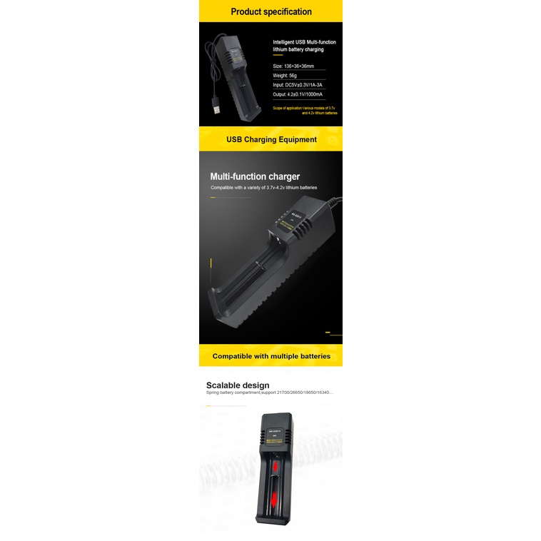 USB intelligent lithium battery charger For Li-ion 14500 16340 16650 14650 18350 18500 26650 Battery