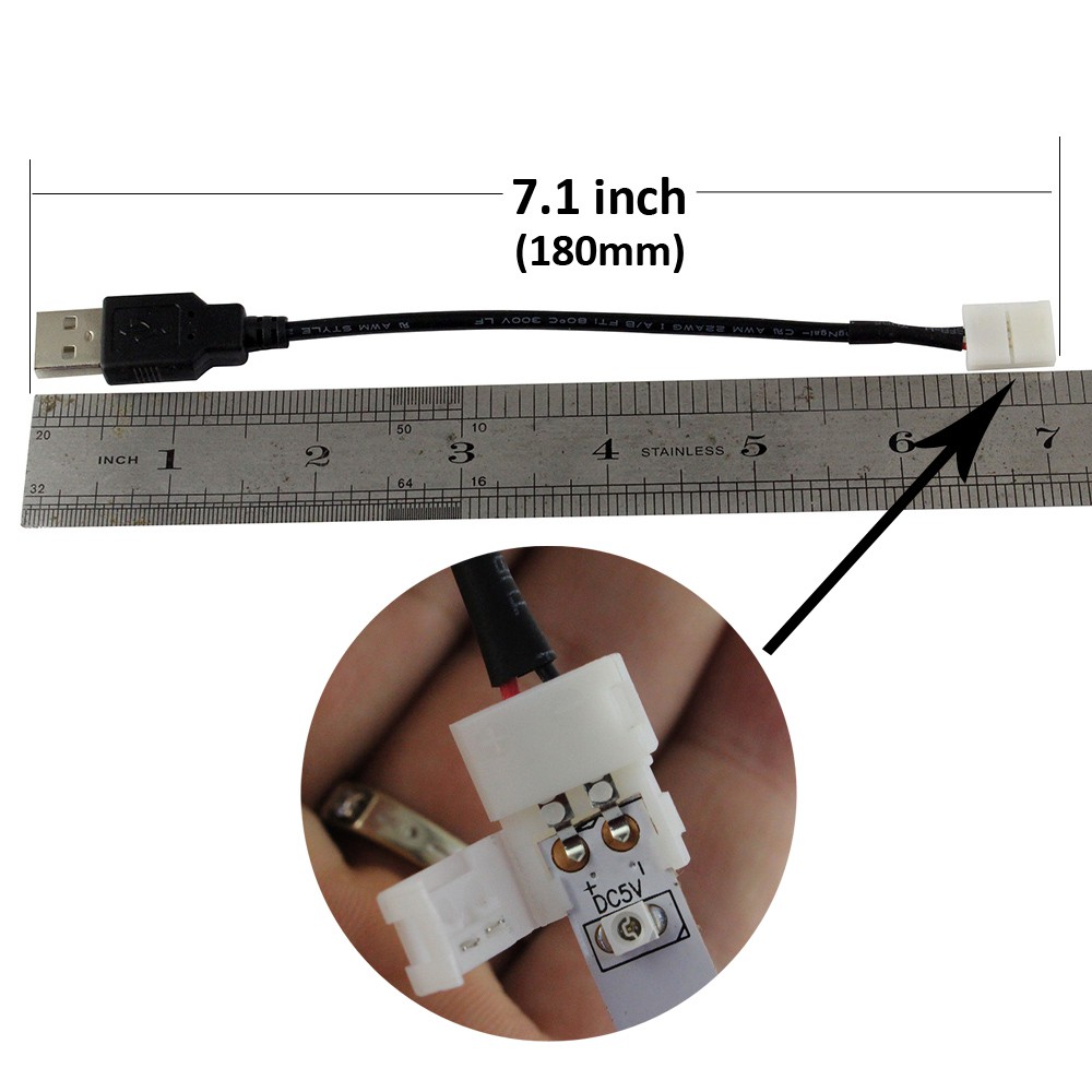 1pc USB to 2 Pin 8mm PCB LED Strip Light Solderless Clips Connector 180mm for reconnect the led strip to usb cable