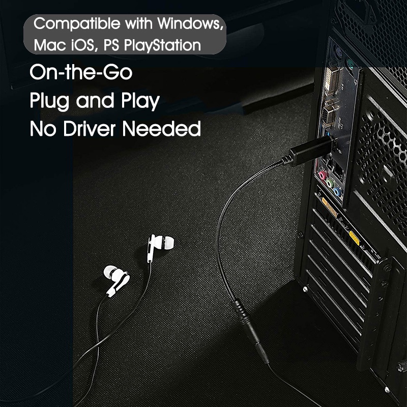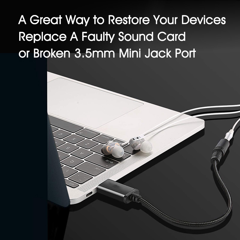 USB to 3.5mm Jack Audio Adapter, External USB Sound Card, USB to Headphone AUX Audio Dongle