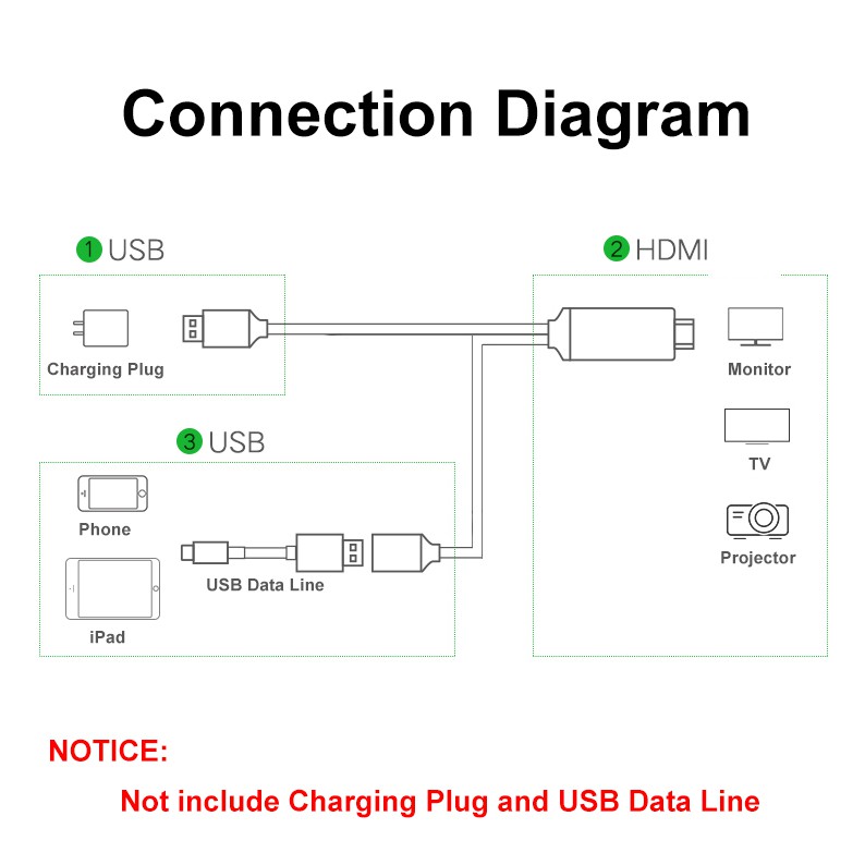 USB to HDMI 4K TV AV Adapter Mirror HD 1080P OTG Audio Charger Cable to Home Projector OTG HDTV