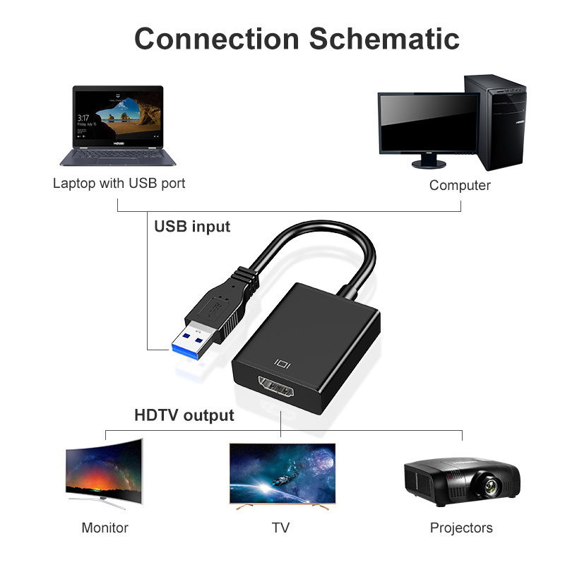 USB to HDTV Adapter for Monitor Windows 11/10/ 8, HDTV USB Converter for Laptop Mac MacBook pro, USB USB 3.0 HDTV Cable Multiple Monitors for Desktop PC TV, Black