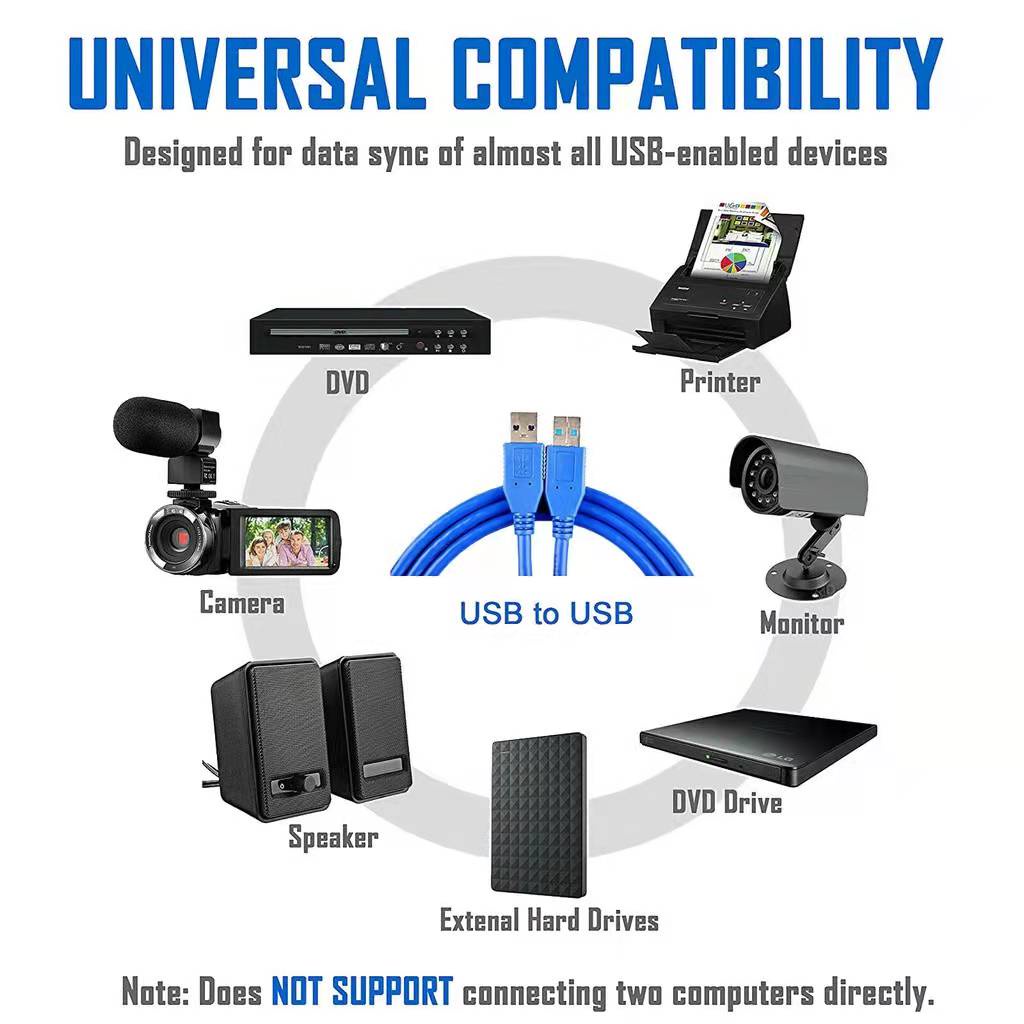 USB to USB 3.0 Cable A Male to A Male for Data Transfer Hard Drive Enclosures Printers Modems, Cameras, Laptop Cooler