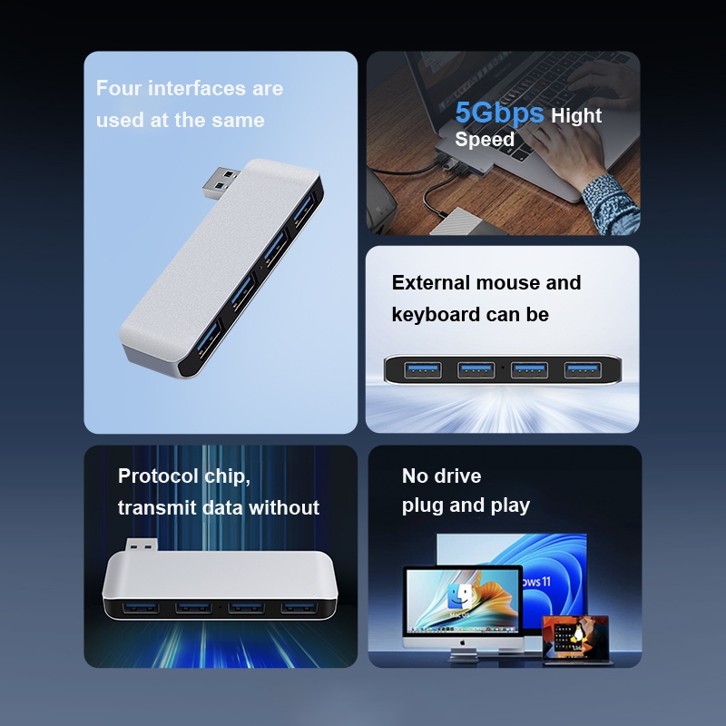 USB3.0 Hub for laptop 5Gbps Hight Speed Data Multi USB Port Expander USB Adapter for Laptop Windows PC Mac Printer Flash Drive SSD
