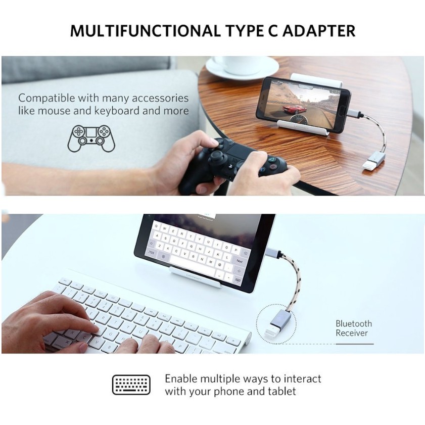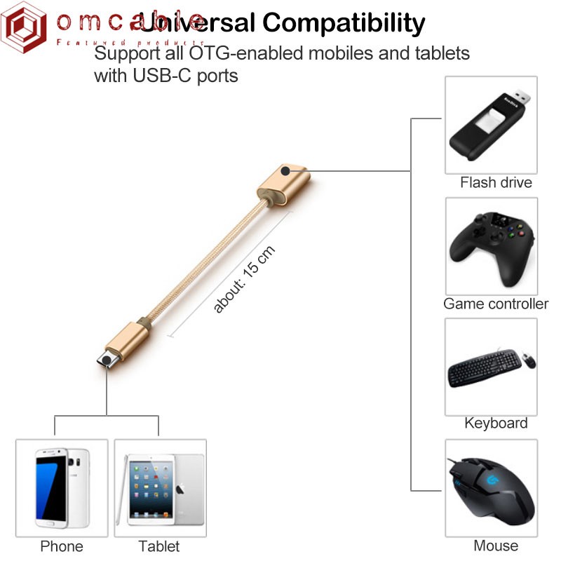 USB3.1 OTG Printer Adapter Cable Type-C Female Aluminum Alloy Connector Nylon Braided Cord on The Go USB Type C Adaptor OTG