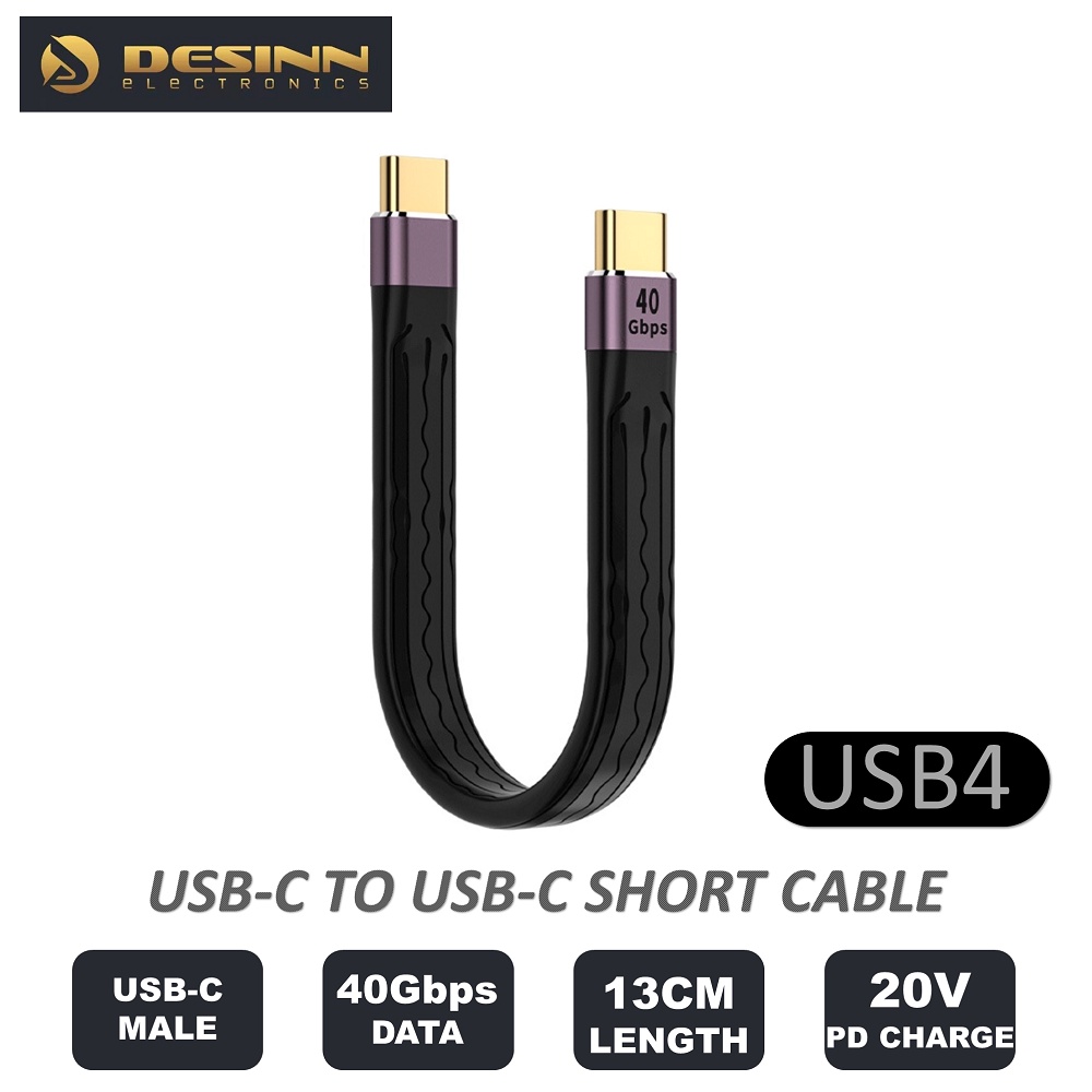 USB4 Type C Cable 13cm USB C Support Thunderbolt 4 3 PD Charge 100W Fast Charging 8K 40Gbps for SSD laptop Smartphone