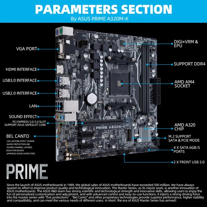 USED ASUS PRIME A320M K Motherboard A320M AMD A320 DDR4 3200MHz 32Gb/s M.2 SATA 6Gb/s USB 3.0 Motherboard Set Support R3 R5 R7 R9 CPU