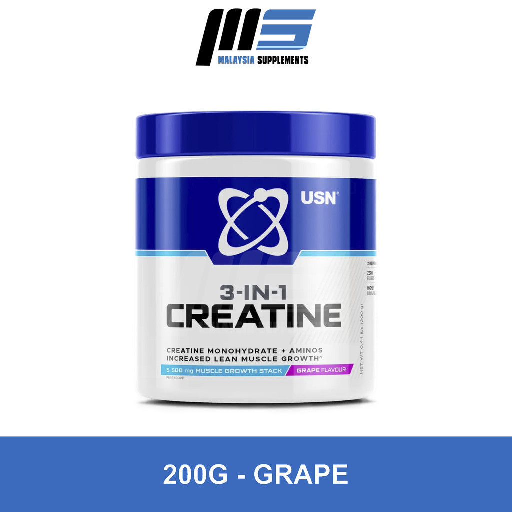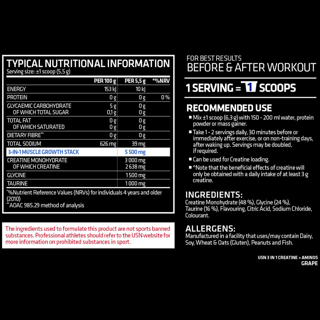 USN 3-IN-1 Creatine (200g) - Micronized Creatine Monohydrate, Amino Acids, Muscle Strength & Energy