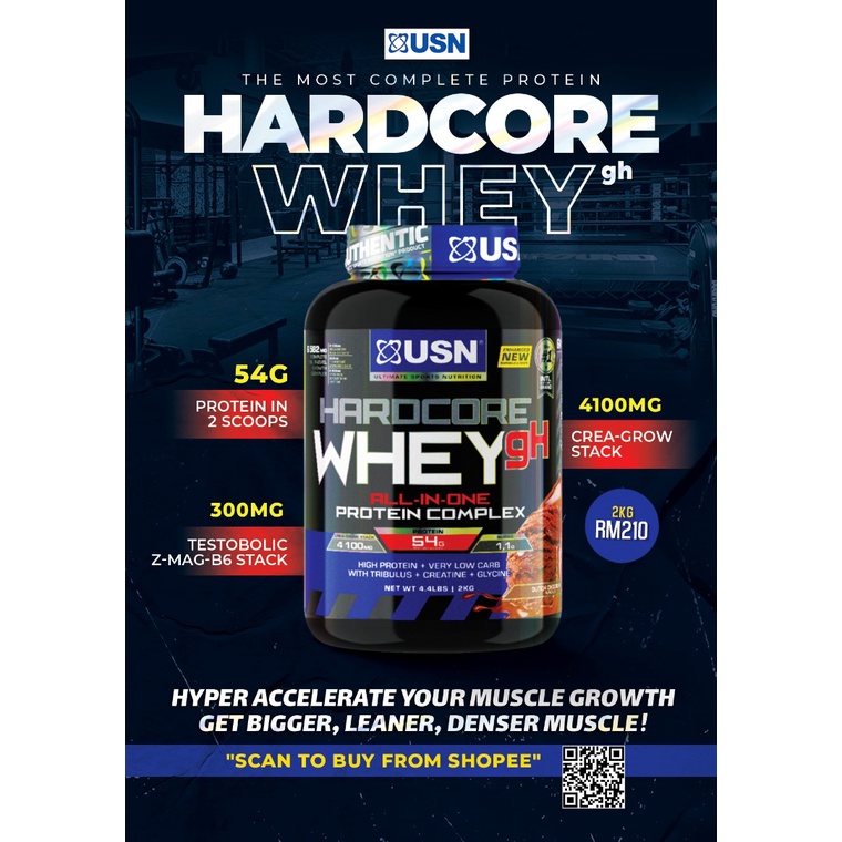 USN Hardcore Whey Gh 1.8 Kg Halal Whey Protein, Lean Muscle, Whey Protein, Ripped