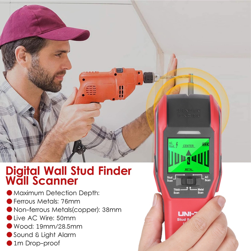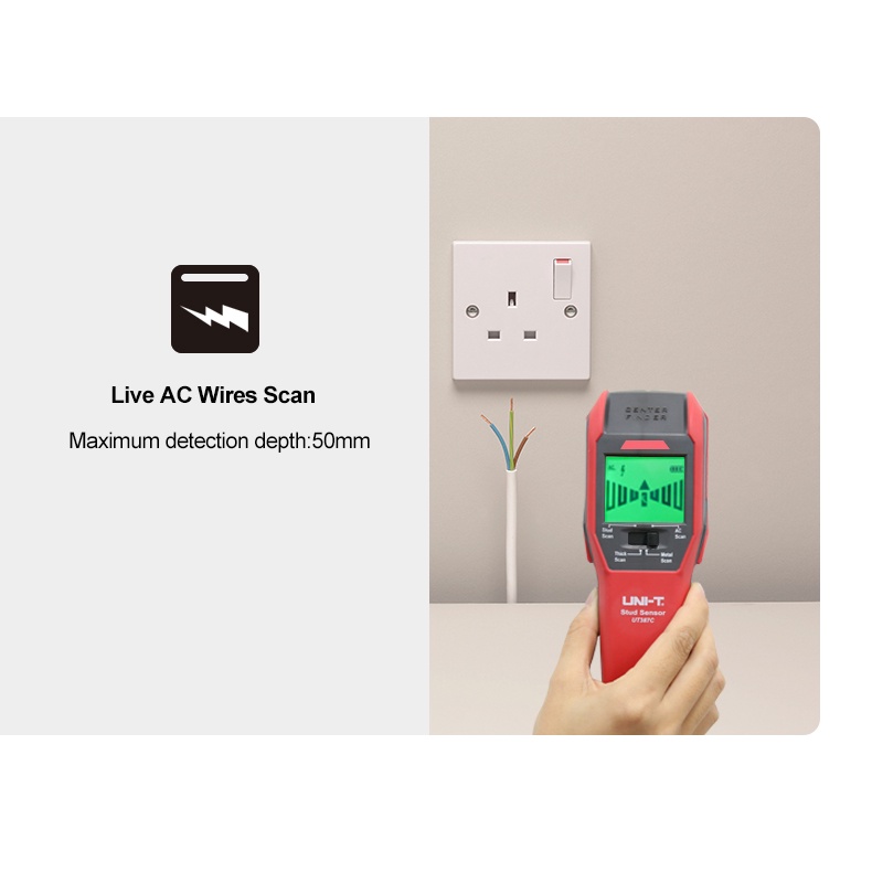 UT387C UNI-T Wall Scanner Metal Detector AC Wood Electric Box Finder Cable Line Depth Tracker Water Pipes Live Wire Dete
