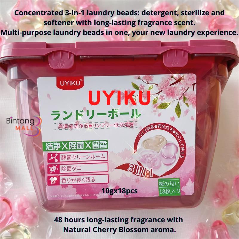UYIKU 3-in-1 Laundry Beads Multi-purpose Detergent, Sterilize, Softener with Long-Lasting Sakura Blossom Flower Scent.