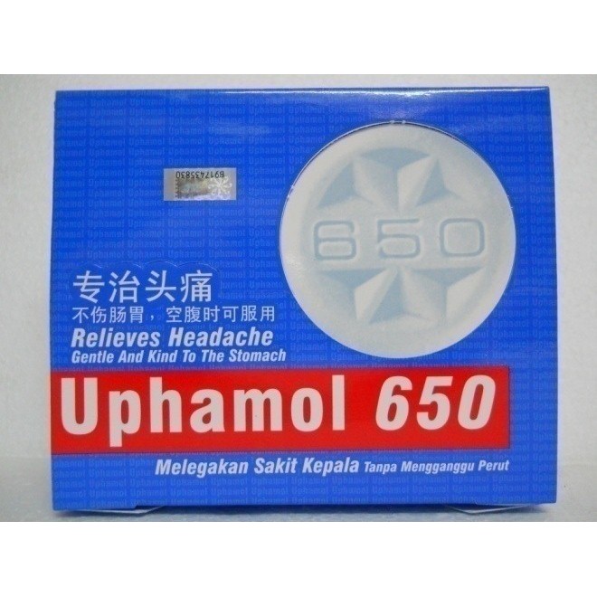 Ubat Demam / panas badan / sakit kepala Uphamol 650mg tab (paracetamol) 10biji