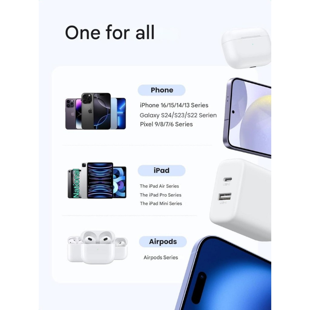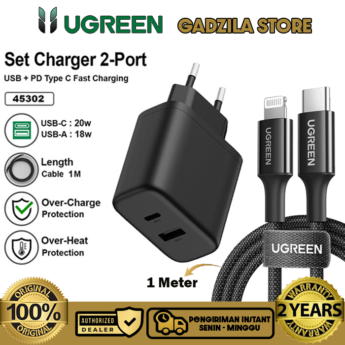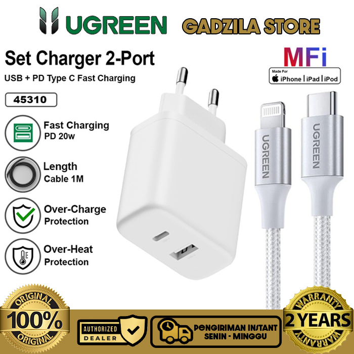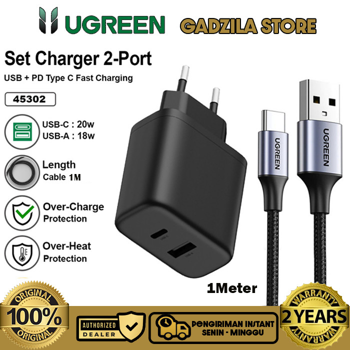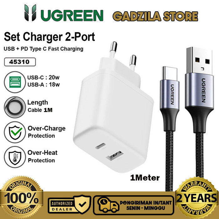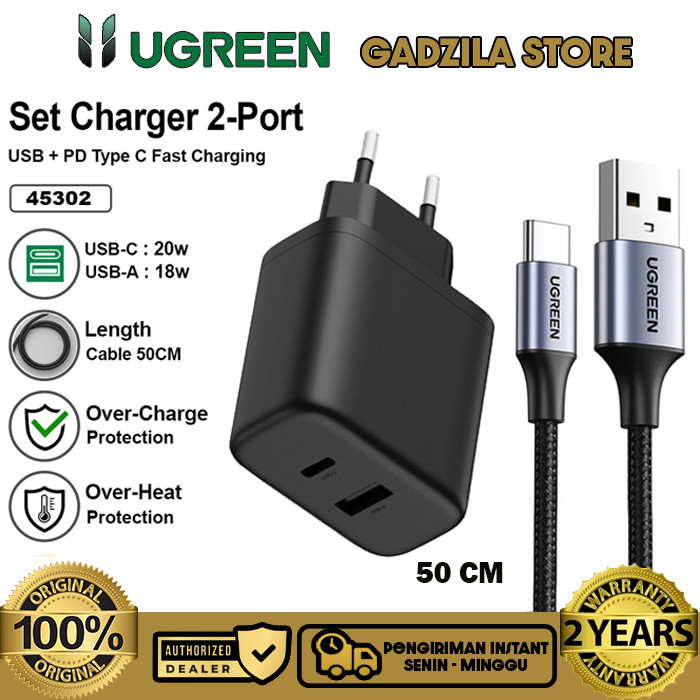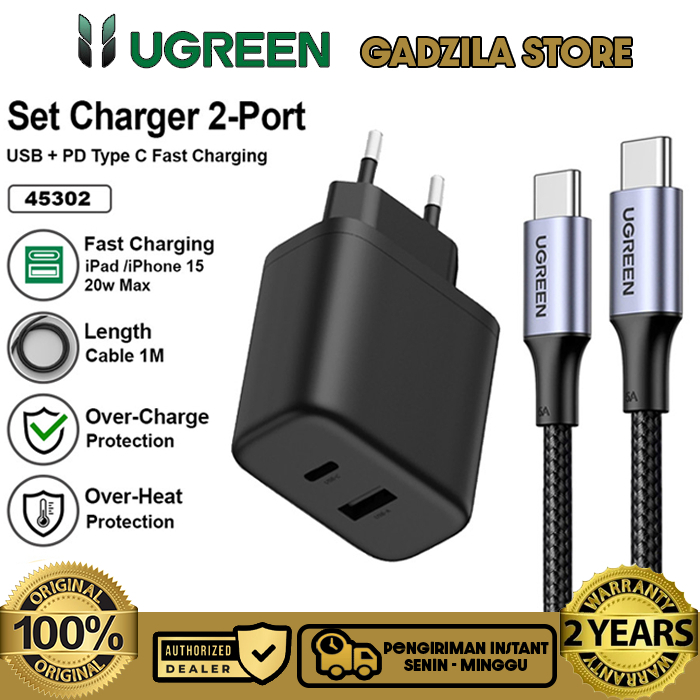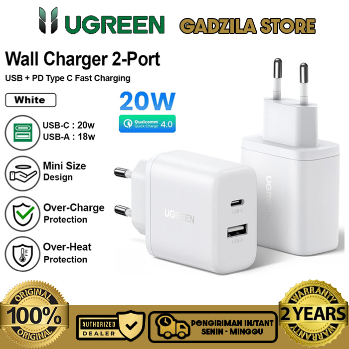 UGREEN Dual Port USB Charger Adapter Head A + USB Type C Fast Charging 20W Adapter For iphone 11 12 13 14 15 16 Series