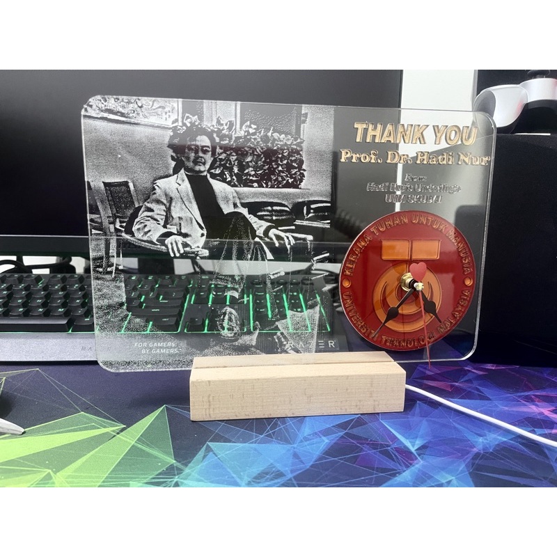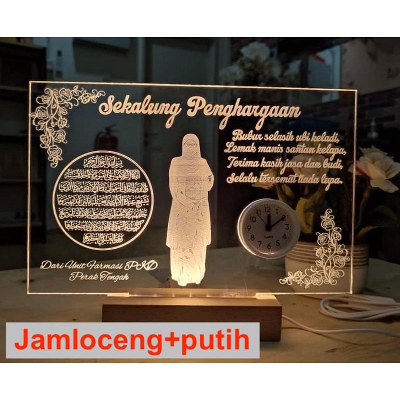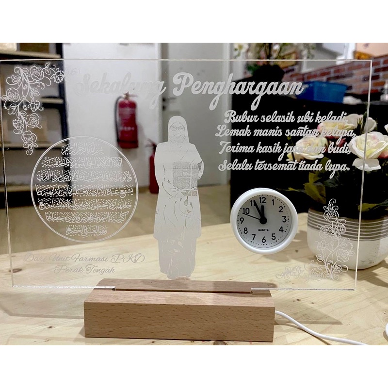 Ukiran gambar + lampu LED, + custom jam