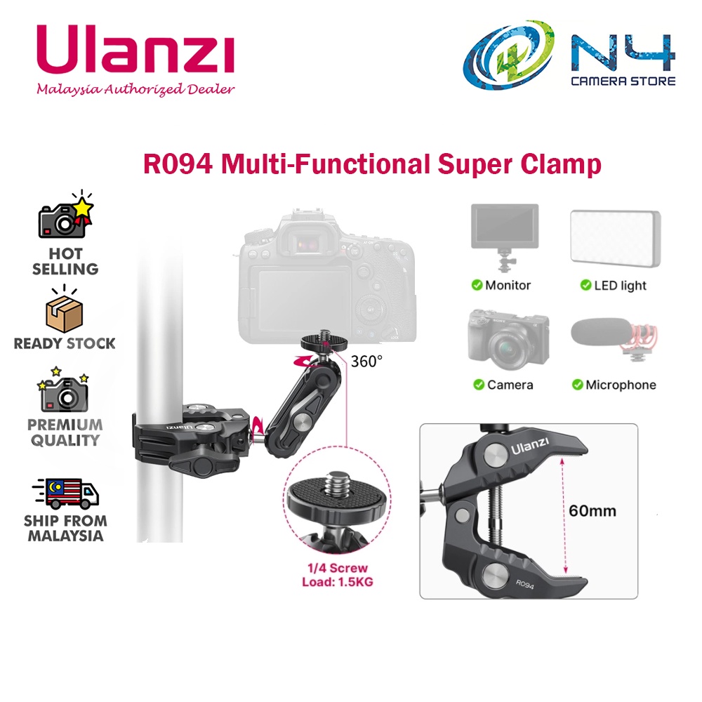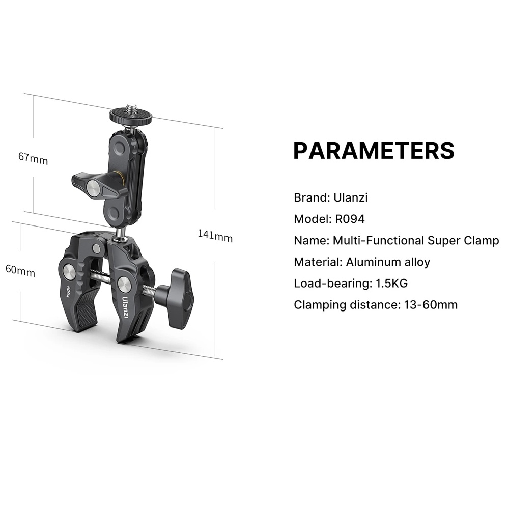 Ulanzi R094 Multi-Functional Super Clamp Ulanzi R094 Metal Super Clamp with Double Ball Head Magic Arm